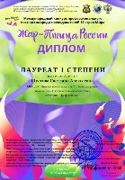 Преподаватель ДШИ г. Александровска Шустова С. А. участвовала в Международном конкурсе профессионального мастерства среди преподавателей 15 стран Мира от "Жар-Птицы России" г. Москва.